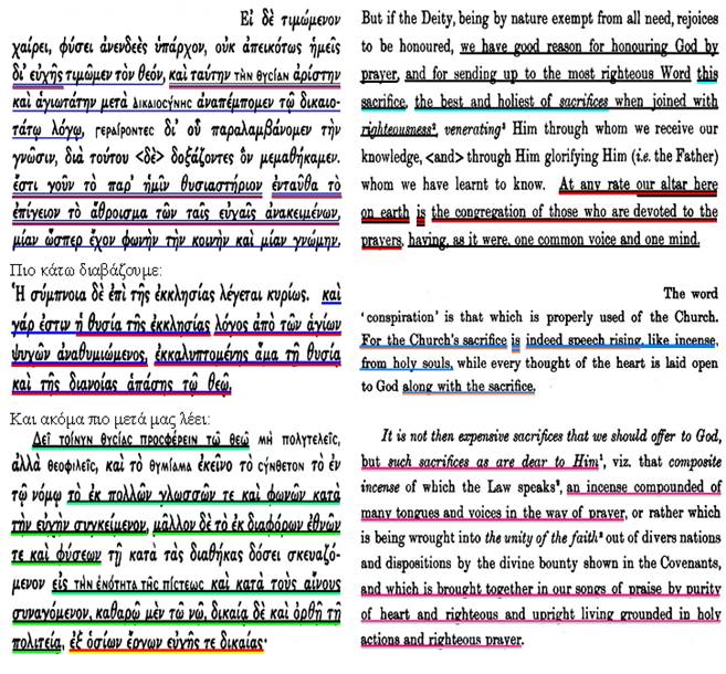 [16] Στο αγγλική μετάφραση που παραθέτω, λέει: «Δεν είμαστε ακόμα και εμείς οι λαϊκοί, ιερείς». Αυτή η έμφαση/διάκριση «ακόμα και…» δεν ισχύει στο λατινικό κείμενο, οπότε και δεν την μετέφρασα. Το λατινικό κείμενο το έχει απλώς: «Nonne et laici sacerdotes sumus?», δηλαδή «Δεν(Noone) είμαστε (sumus) και(et) οι λαϊκοί(laici) ιερείς(sacerdotes);». Και συνειρμικά το «ακόμα» δεν αρμόζει στα συμφραζόμενα. Δείτε εδώ το Λατινικό κείμενο: http://www.tertullian.org/latin/de_exhortatione_castitatis.htm